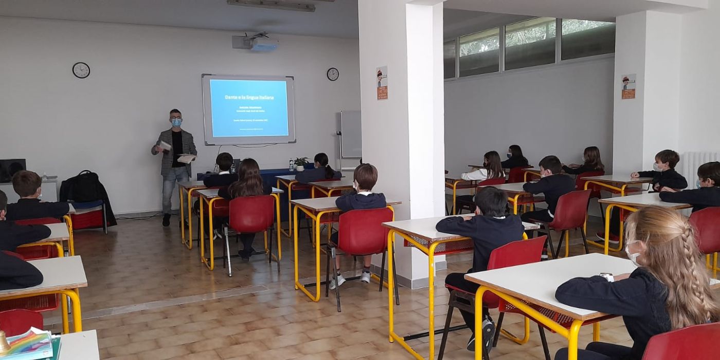 Nel pomeriggio di giovedì 25 novembre hanno preso avvio le attività del Progetto “In Viaggio con Dante”, con un ospite d’eccezione che ha incontrato gli alunni delle classi Quinta e Quarta Primaria dell’Istituto Montessori Internazionale Oxford: il Professore Antonio Montinaro, docente associato di Linguistica italiana