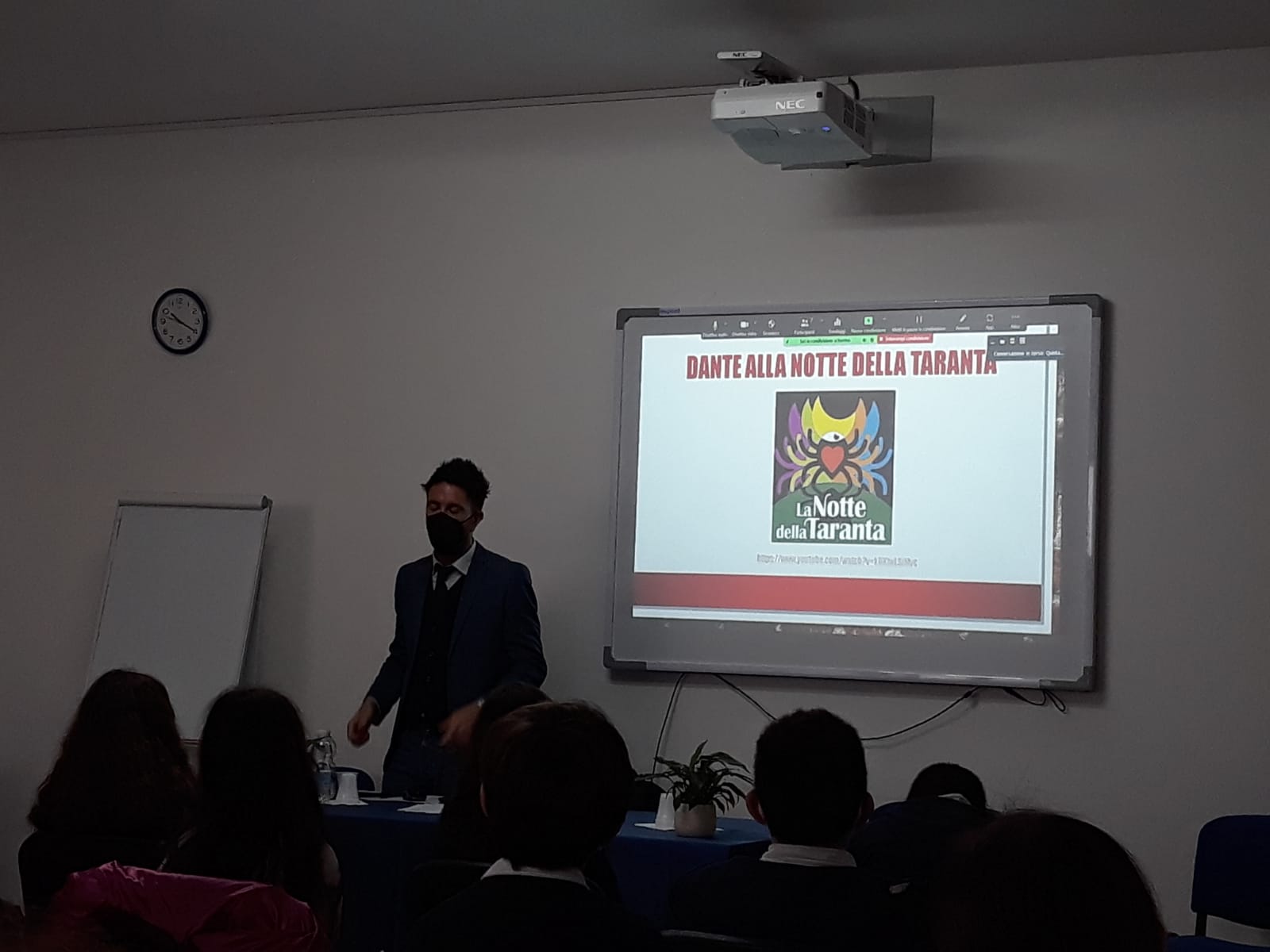 Particolarmente interessante il momento in cui il Professore ha proposto l’ascolto di alcuni brani che riprendono l’opera di Dante e che incisivamente dimostrano la grande versatilità dei versi della Commedia, che si adatta alla maggior parte dei generi musicali, anche i più tradizionali.
