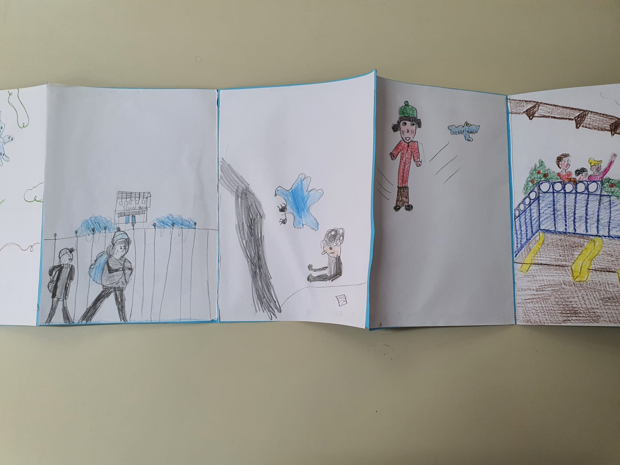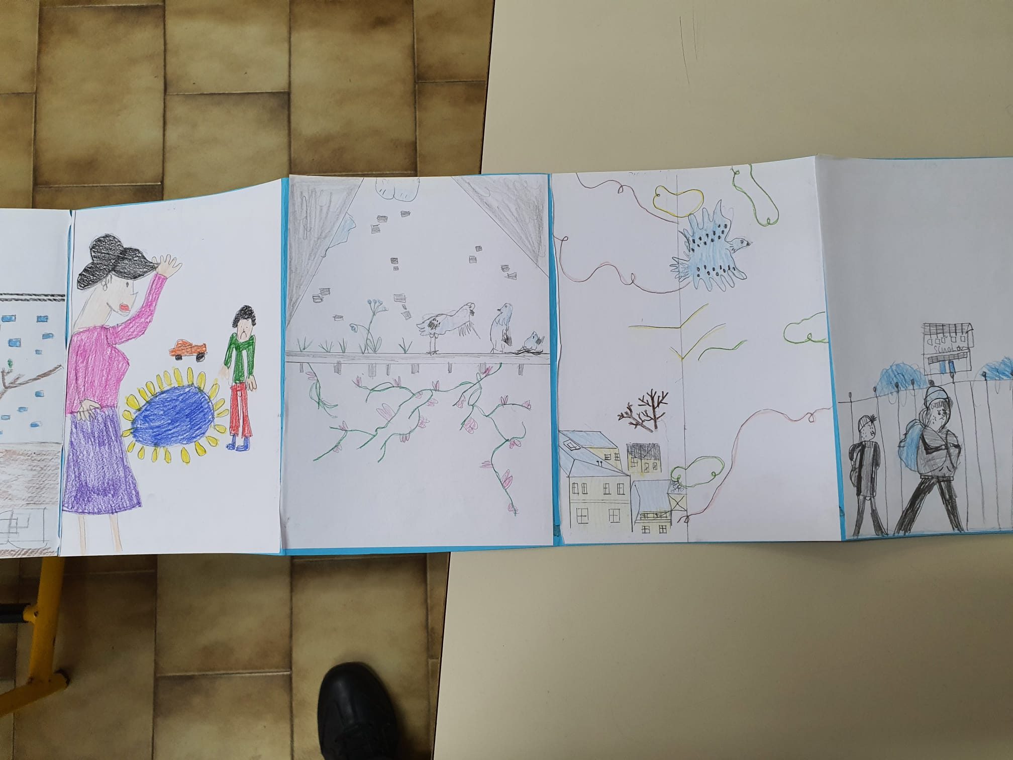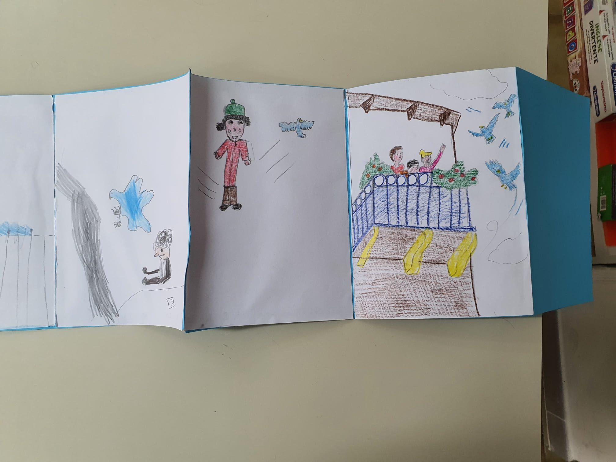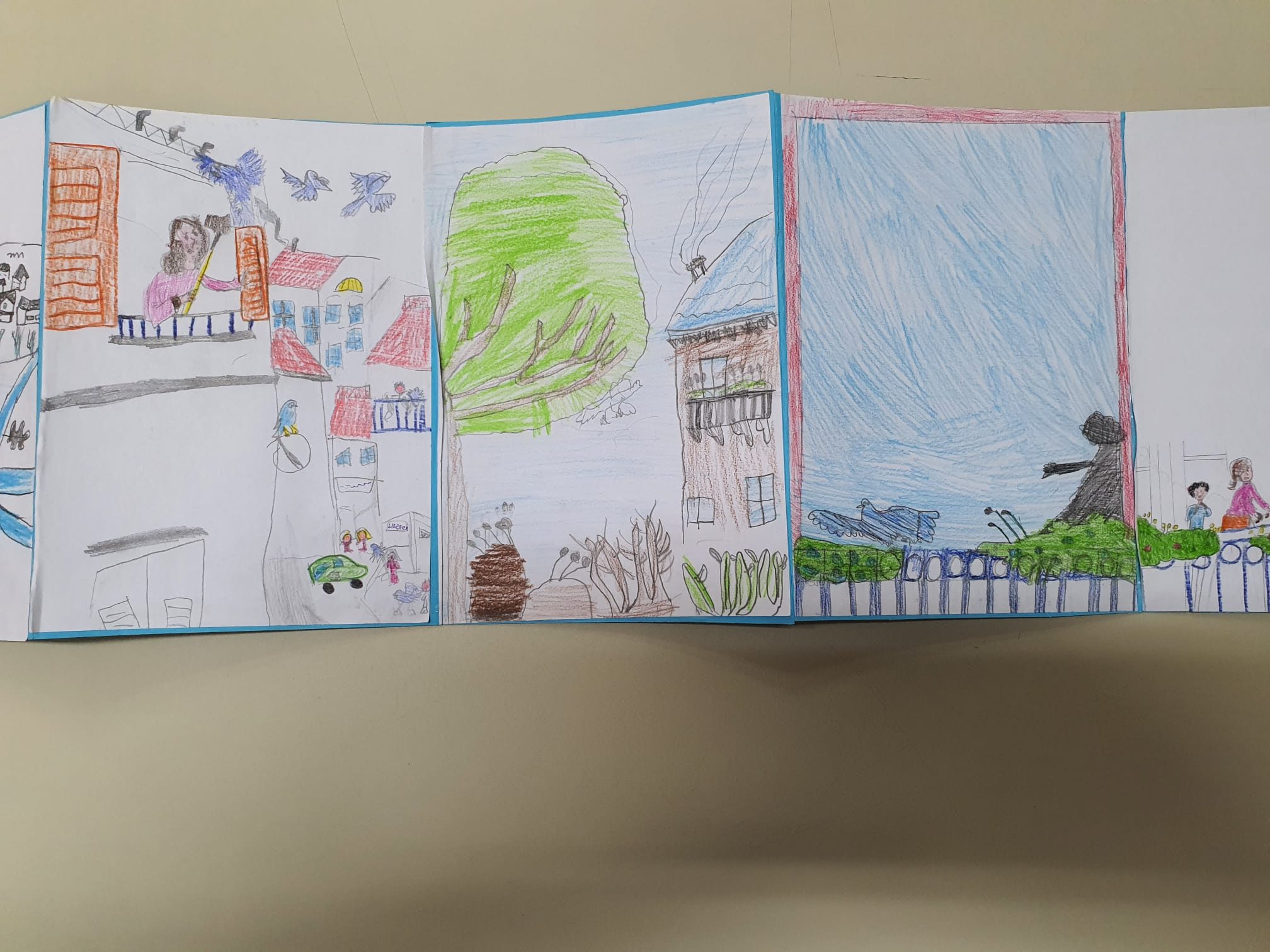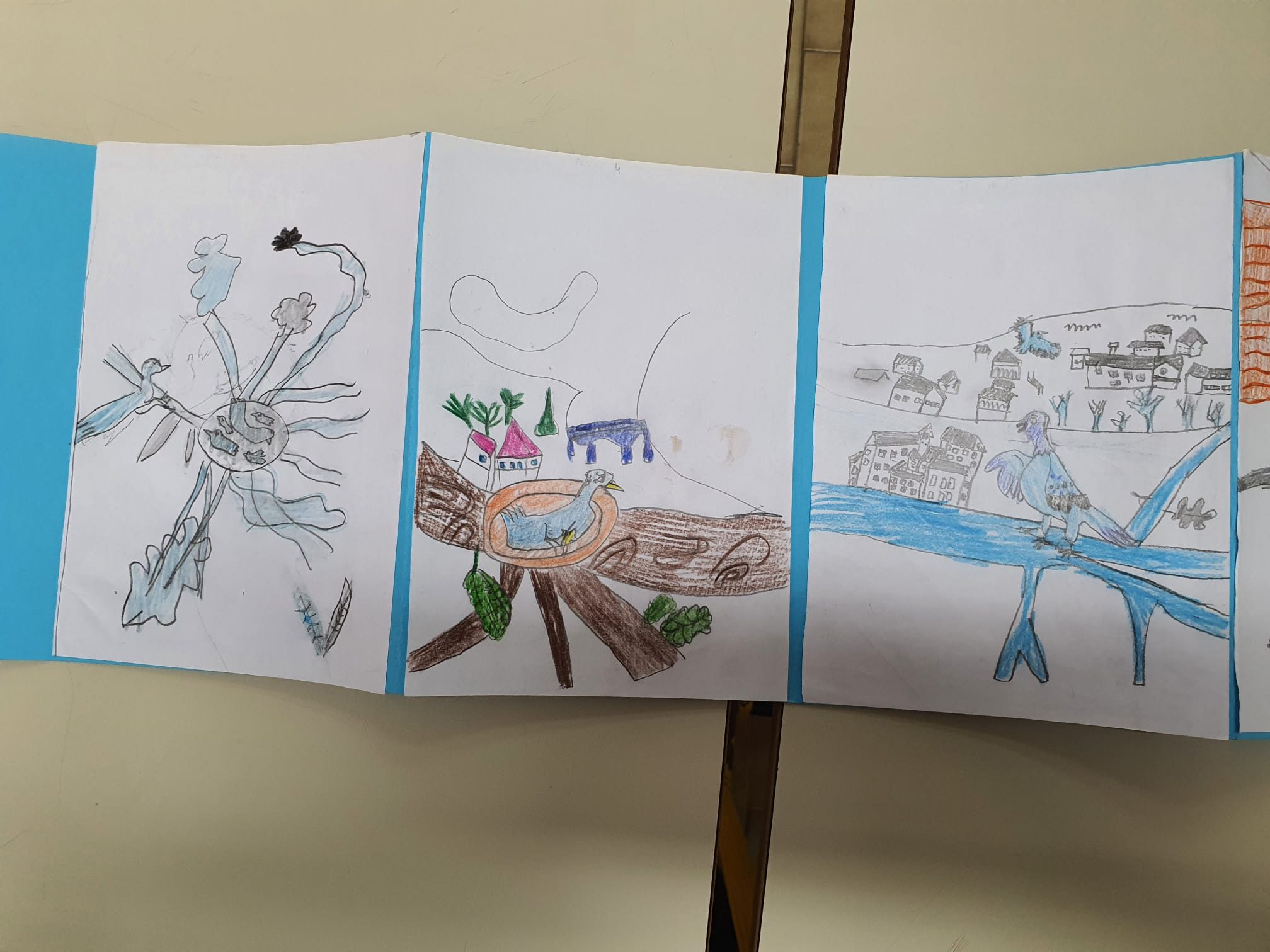 Gli alunni della scuola primaria hanno poi regalato all’ospite un leporello che racconta attraverso i disegni realizzati da loro la storia di Piccione Picciò.