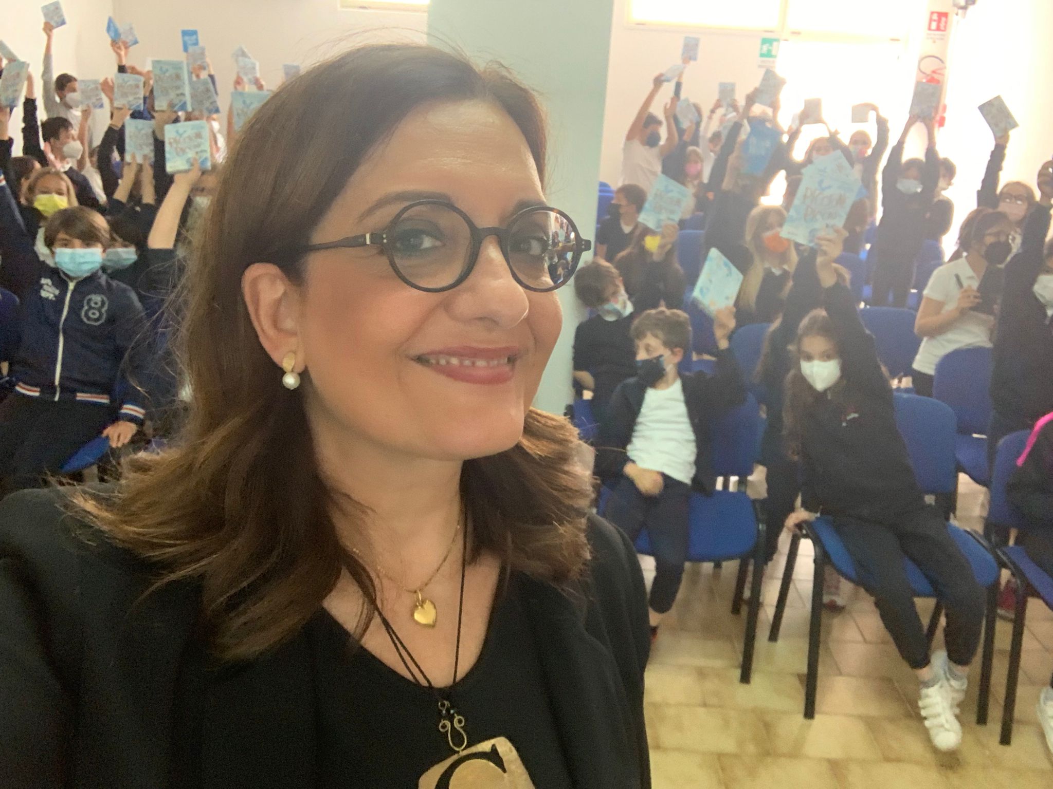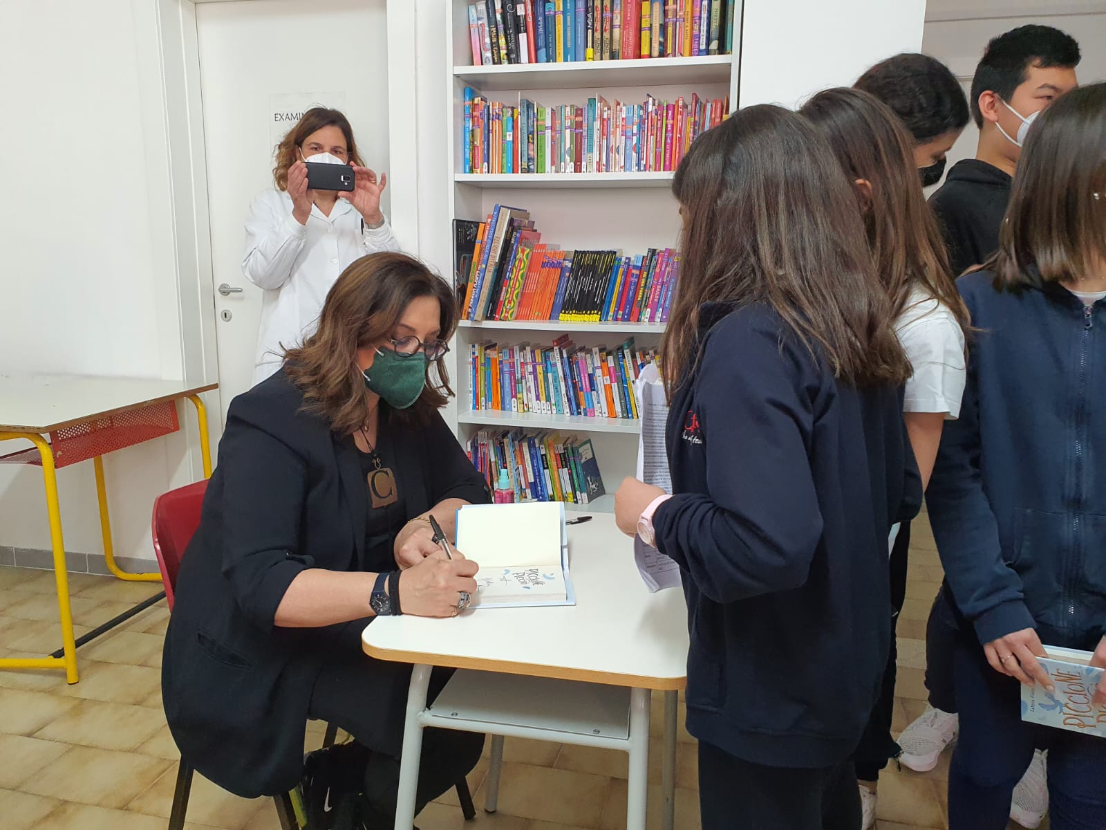 Accolta dalla direttrice didattica Anna Grazia Buttazzo e dalla dirigente scolastica Carmen Indirli, la scrittrice ha incontrato le studentesse e gli studenti delle classi prima e seconda della scuola secondaria di primo grado e quelli delle classi terze, quarte e quinte della scuola primaria, oltre alle loro insegnanti con le quali i ragazzi avevano in precedenza letto il libro, discutendone il contenuto e la sua morale.