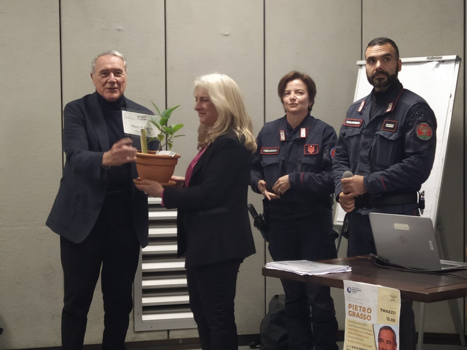 Inoltre, ad impreziosire l’evento è stata la la consegna alla scuola dalle mani di Pietro Grasso dell’ “Albero di Falcone”, una talea che nasce dall’albero che cresce a Palermo sotto la casa del magistrato. I carabinieri del Nucleo Ambientale hanno curato la consegna dell’arbusto.