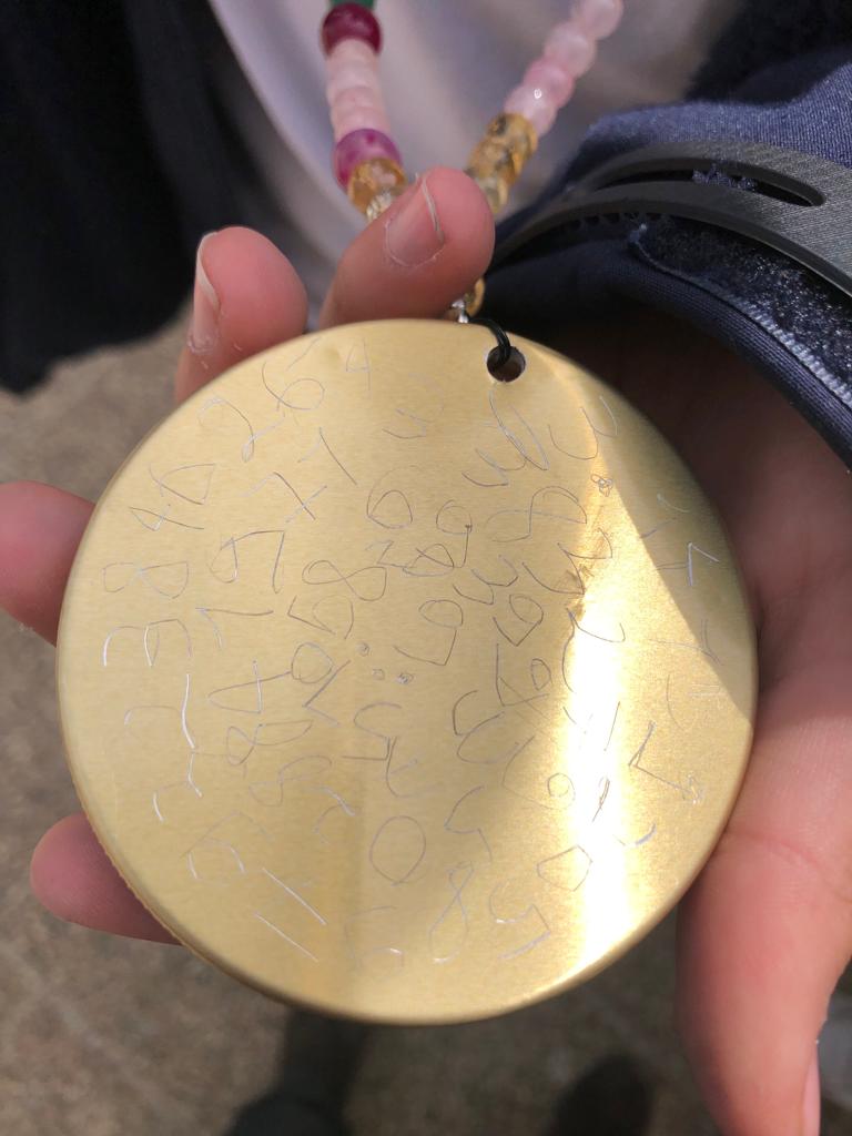 L’autore della frase più bella è stato premiato con una medaglia riportante le cifre del pigreco disposte lungo una spirale di Archimede, scopritore del numero, attaccata ad una collana di perline infilate con un ben preciso criterio cromatico nel rispetto dei numeri ‘magici’ del pigreco.
