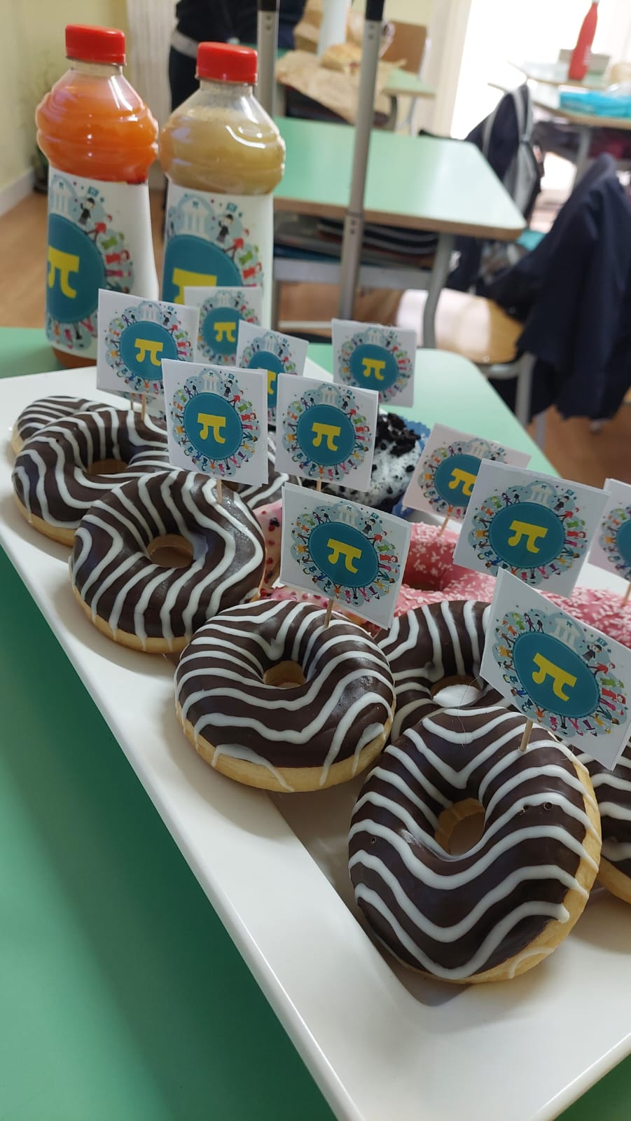 In occasione del Pi Greco Day le classi della scuola primaria e quelle della secondaria di primo grado Oxford, mostrando grande interesse e partecipazione, ci hanno tenuto a festeggiare il numero irrazionale più famoso al mondo ‘onorandolo’ sia dal punto di vista culinario con la realizzazione di torte e dolcetti a tema, sia da quello più strettamente matematico eseguendo compiti e lavoretti che coinvolgessero in qualche modo il pigreco con le sue tante cifre decimali.